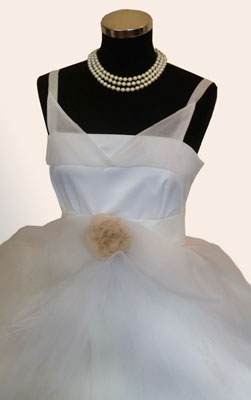 Drapierte Rosen, Applikationen mit echten Swarowskisteinen veredelt, Rüschen und vieles mehr.